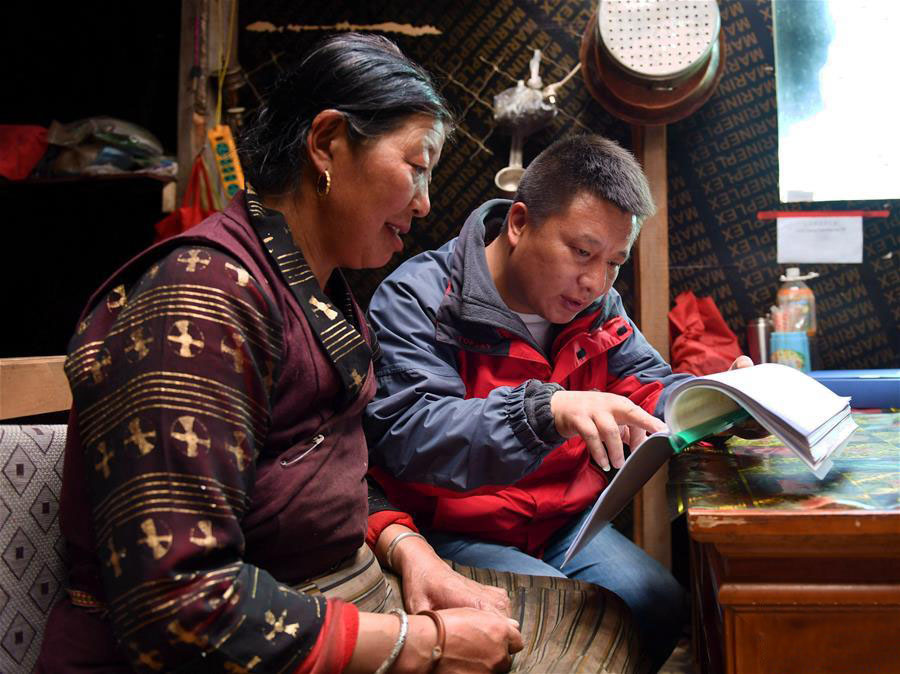 近期,西藏山南市全面实施全民参保计划。当地社保工作人员深入到隆子县玉麦乡玉麦村,走村入户,对边境百姓进行社保信息核准确认,确保社会保险信息准确完整,做到查不漏户,户不漏人,人不漏项,实现人人参保,应保尽保。图为山南市社保工作人员前往玉麦乡玉麦村村民家中进行社保信息补充登记
