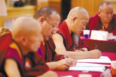宗教界的政协委员在小组讨论会上认真做笔记。